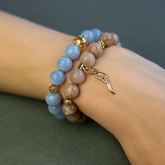 Saules akmens 10mm rokassprādze ar piekariņu "spārns"